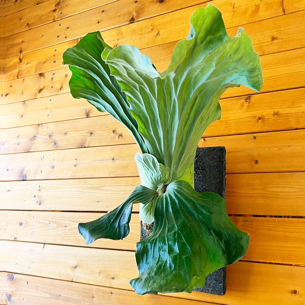 縦に真っすぐ伸びる貯水葉と像の耳のように見える幅広の胞子葉が特徴的なエレファントティス。