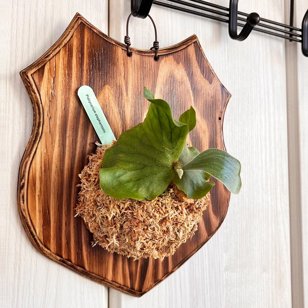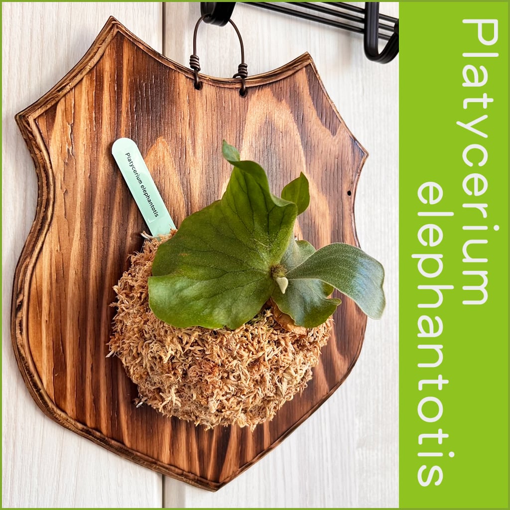 縦に真っすぐ伸びる貯水葉と像の耳のように見える幅広の胞子葉が特徴的なエレファントティス。