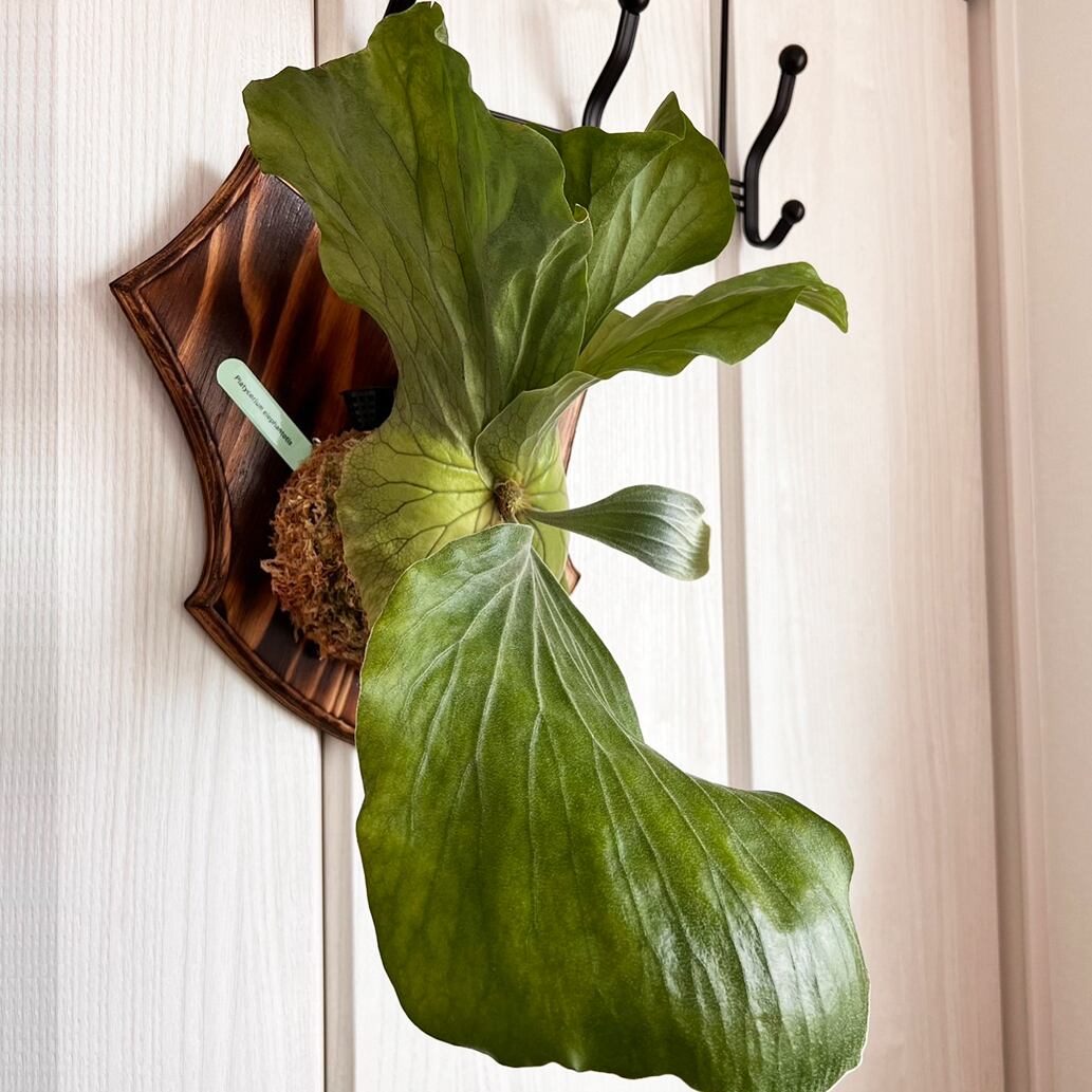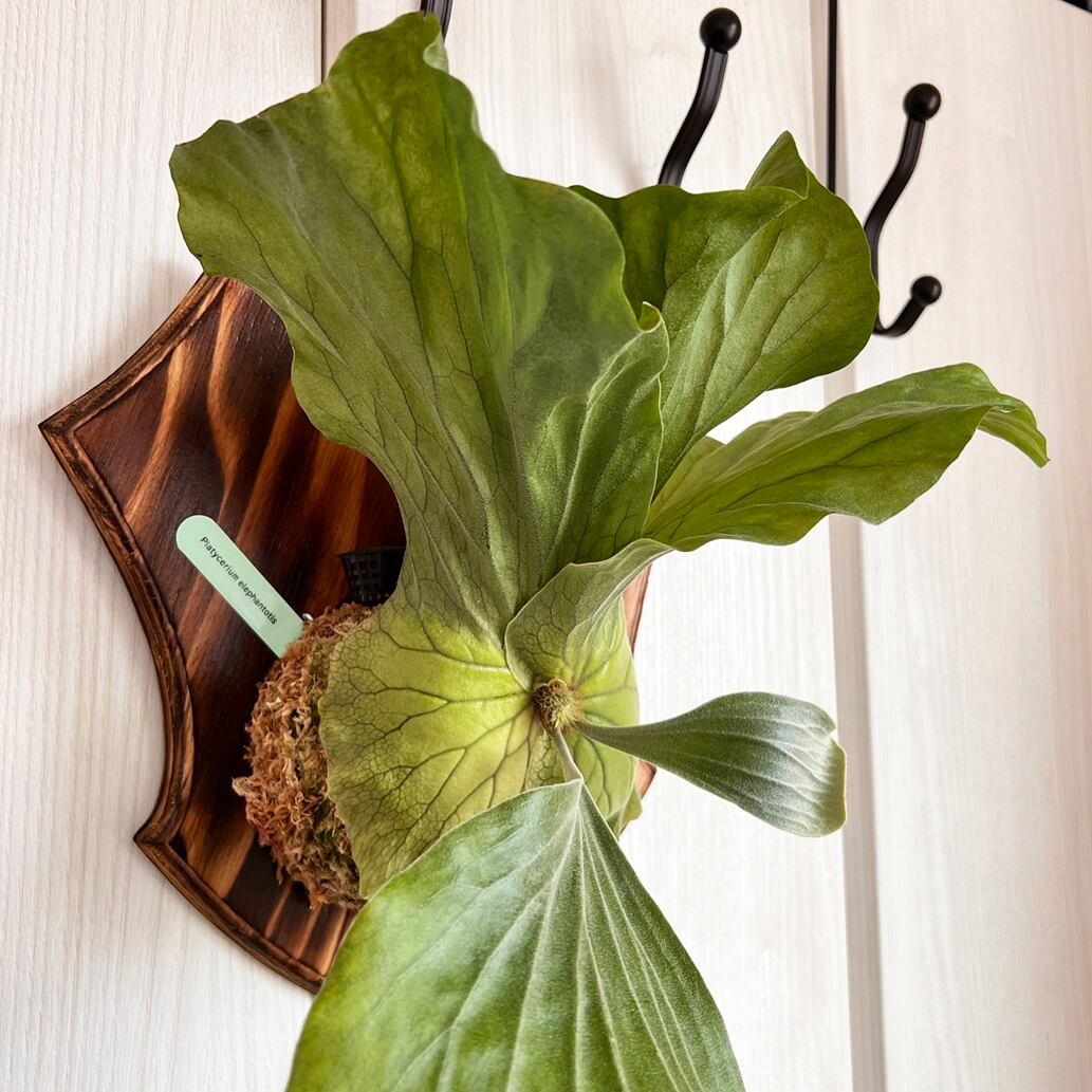 エレファントティスは、縦長に伸びる貯水葉と像の耳のように見える幅広の胞子葉が特徴的なビカクシダです。