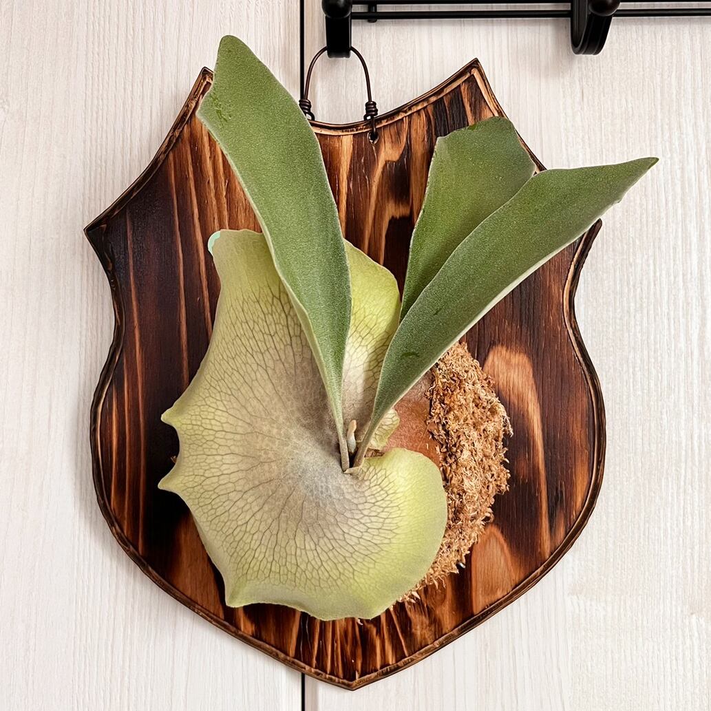現在貯水葉と胞子葉展開中です。とても元気なネザーランドです。大きいサイズの着生板なので成長しても板替えする手間がかかりません。ネザーランドはビカクシダの中でもとても育てやすい品種ですので初心者やビカクシダを試したい方にオススメです。