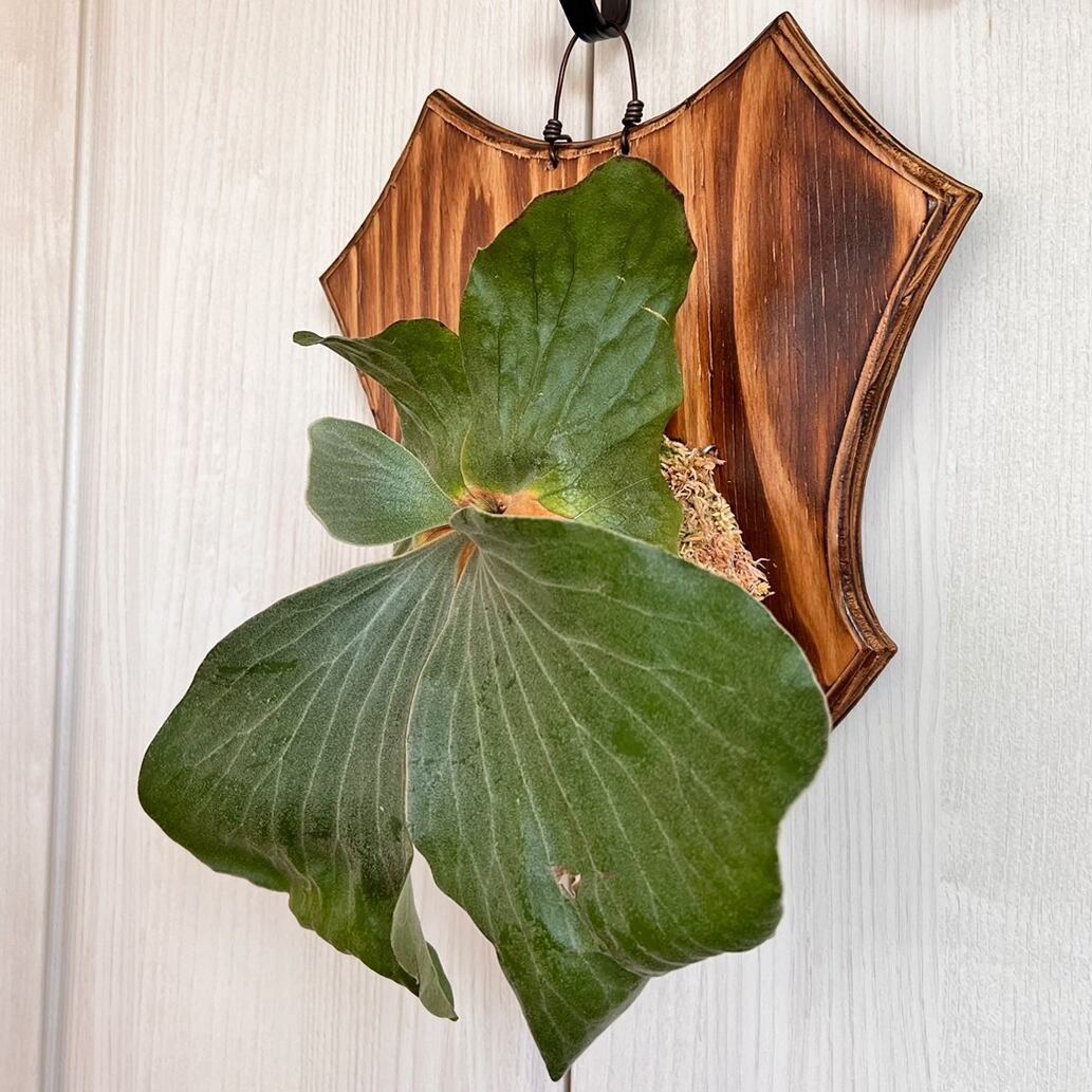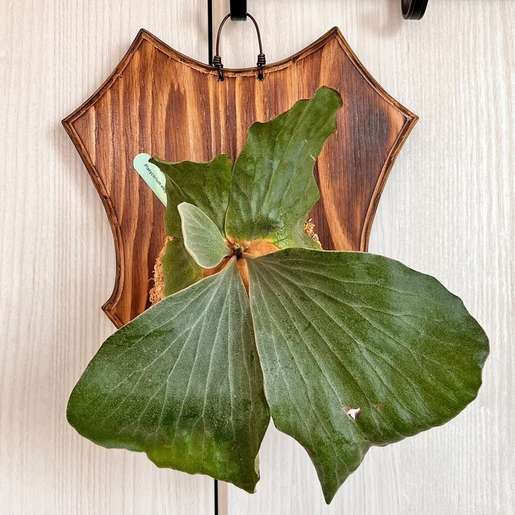 エレファントティスは、縦長に伸びる貯水葉と像の耳のように見える幅広の胞子葉が特徴的なビカクシダです。