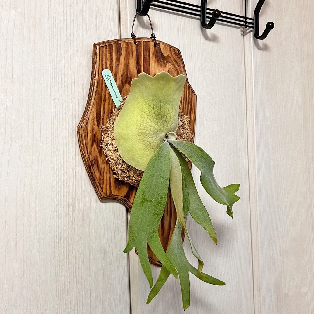 ビカクシダの中では乾燥には比較的強いです。水苔全体が乾いたら水やりをして下さい。冬の寒さや蒸れに弱い品種の為、適切な明るさと気温、風通しの良い環境が必要になります。