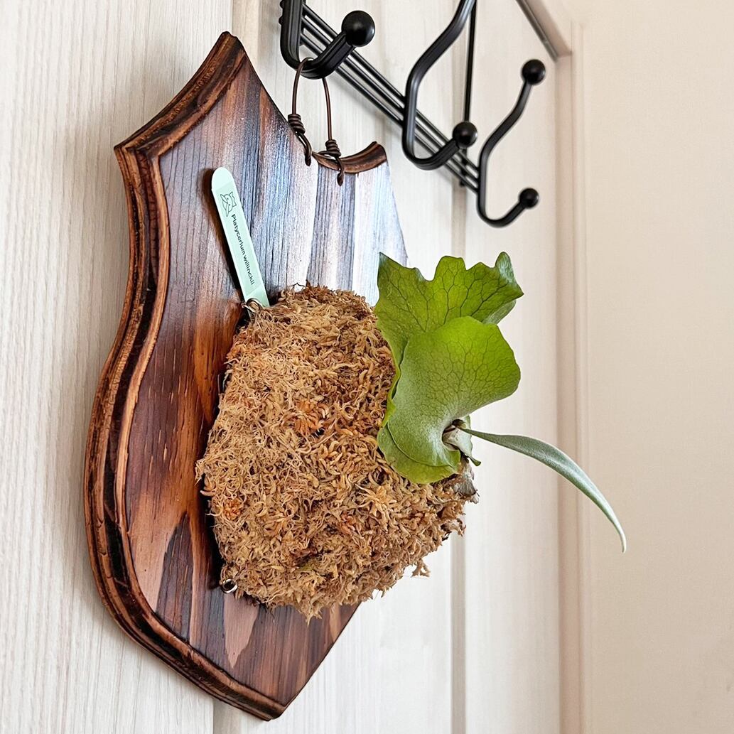 大きく成長すると、立ち上がる立派な貯水葉と、分岐し細長く垂れ下がる胞子葉が展開され、美しくとても迫力のある姿をお楽しみいただけるかと思います。