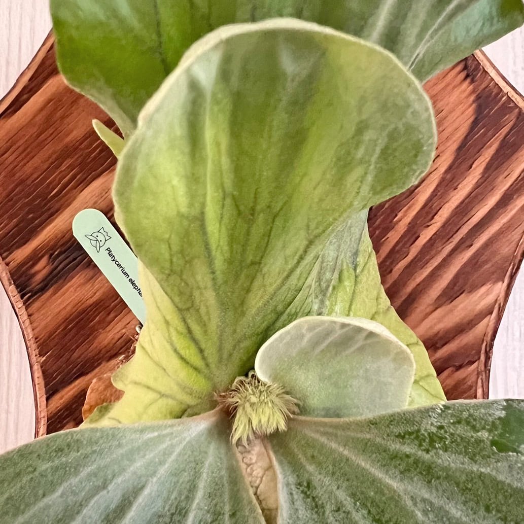 エレファントティスは、縦長に伸びる貯水葉と像の耳のように見える幅広の胞子葉が特徴的なビカクシダです。