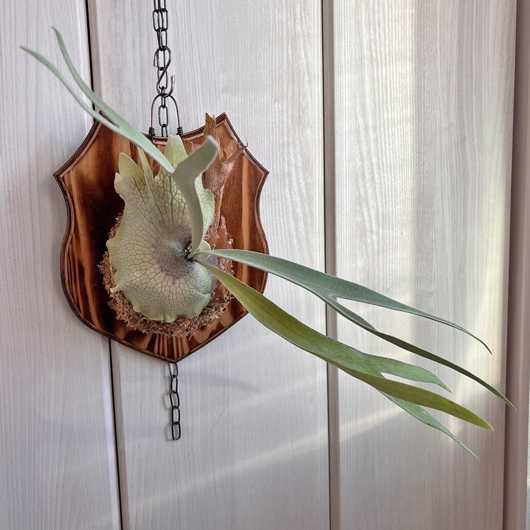 板付け済みなので、そのまま壁面などに吊り下げて飾ることができる壁掛け観葉植物になります。
